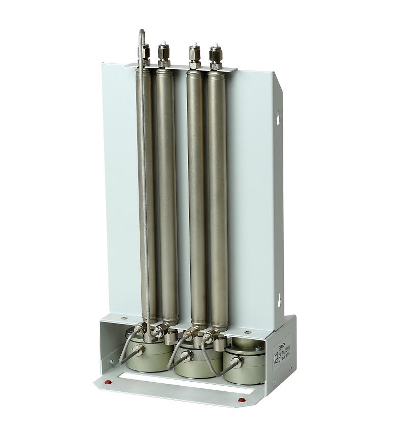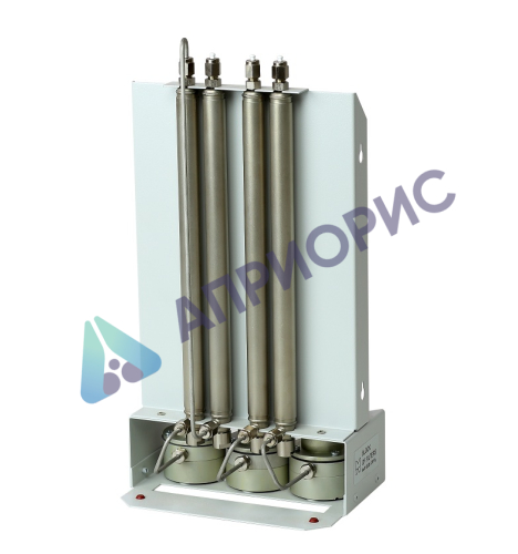 Блок фильтров осуществляет дополнительную стабилизацию давления и очистку потоков газа-носителя, водорода и воздуха на входе в хроматограф.