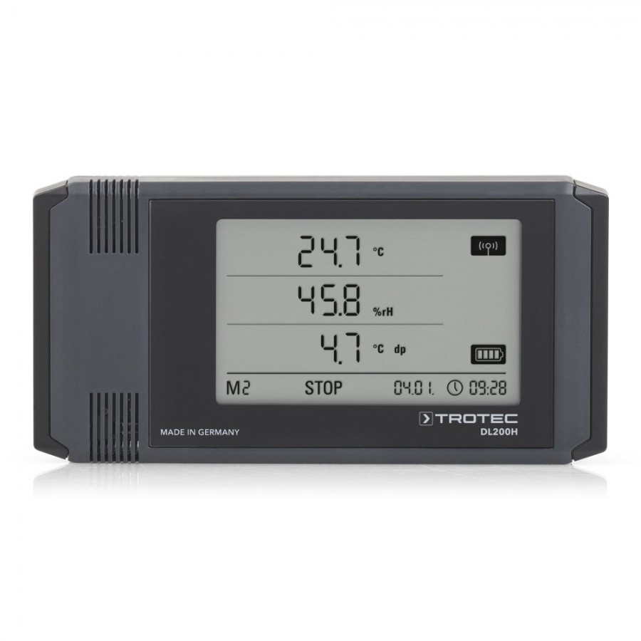 Логгер DL200H - прибор для мониторинга факторов окружающей среды. Используя два внутренних датчика этого регистратора данных, можно одновременно измерять и записывать температуру воздуха, точку росы, относительную и абсолютную влажность. Вот почему DL200H так хорошо подходит для мониторинга окружающей среды в зданиях, компьютерных центрах, музеях или кладовых, а также для управления процессами, чувствительными к климату, во время промышленного производства.