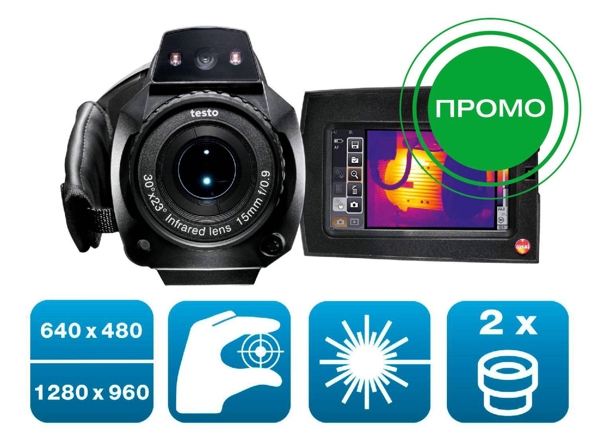 - До 307 200 температурных точек: детектор с разрешением 640 x 480 пикселей для точного обнаружения неисправностей. Технология SuperResolution повышает разрешение до 1280 x 960 пикселей!