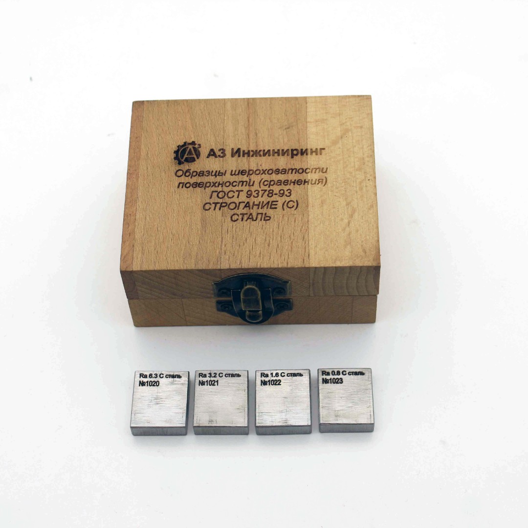 Образцы (меры) шероховатости сравнения предназначены для определения шероховатости объекта контроля путем сравнения с образцами с известными значениями шероховатости. В зависимости от вида обработки поверхности объекта контроля и объема требований к выполнению различных технологических операций, требуются наборы образцов с различными видами обработки и номинальными значениями. Образцы производятся в соответствии с ГОСТ 9378-93.