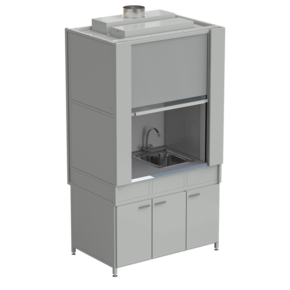 Шкаф вытяжной с коконом из стеклопластика с мойкой из НС и смесителем с ВЗБ светильником 1200х820х2240 мм, раб. поверхность - МОНОЛИТНЫЙ КЕРАМОГРАНИТ