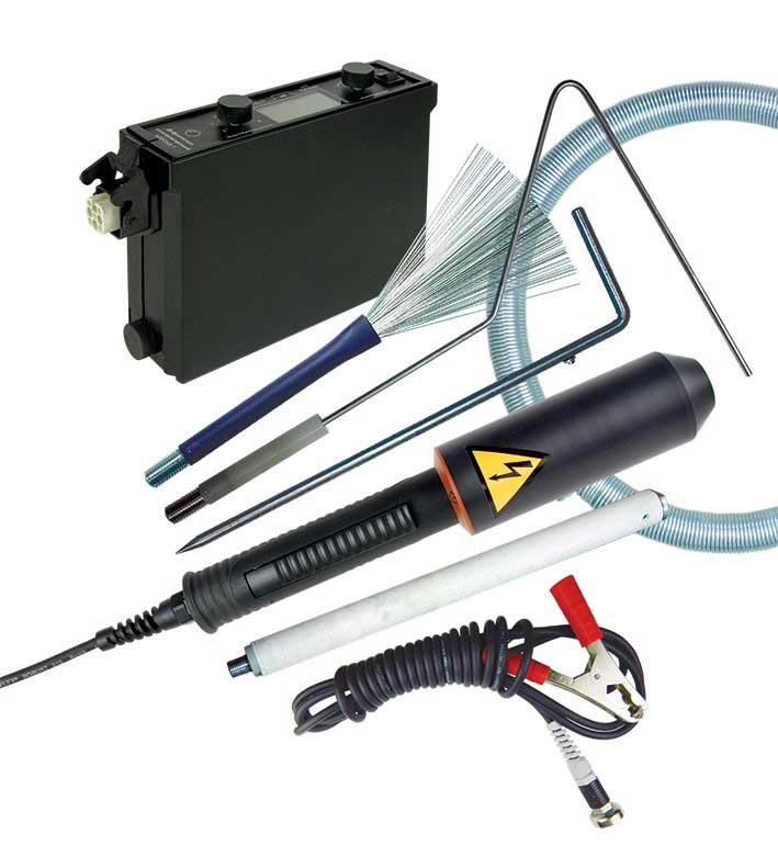 Прибор работает за счет приложения импульсного высоковольтного напряжения и регистрации пробоя в областях нарушения сплошности. Он полностью соответствует нормам стандарта ASTM G62-A. Модель востребована при диагностике диэлектрических покрытий, имеющих толщину до 16 миллиметров.