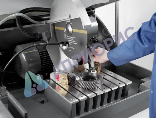 Высокопроизводительный ручной отрезной станок. Предназначен для резки образцов в большом диапазоне размеров, правильной и неправильной формы. Надежная конструкция, большой отрезной стол, просторная отрезная камера, мощный двигатель и эффективное охлаждение позволяют производить быстрое точное отрезание образцов в лаборатории или на производстве. Предназначен для работы с отрезными дисками диаметром 350 мм. Мощная система охлаждения при резке образцов. Эргономичная ручка для перемещения отрезного диска. Яркая подсветка рабочей камеры.