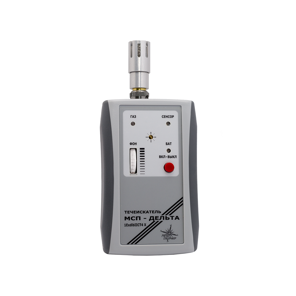 Взрывозащищённый течеискатель горючих газов и фреонов МСП-Дельта состоит из блока электроники и датчика, который устанавливается на блок электроники или на удлинитель, позволяющий осуществить поиск утечки газа в труднодоступных местах. Данное устройство не является средством измерения и не имеет точностных характеристик. Питание прибора осуществляется от блока аккумуляторов напряжением 3,6 В (три аккумулятора VH AA-1700). Заряжаются аккумуляторы от сетевого адаптера только вне взрывоопасных зон помещений. В конструкции течеискателя предусматривается контроль состояния аккумуляторов с индикацией их разряда. Течеискатель не является источником агрессивных или токсичных газов и звукового шума.