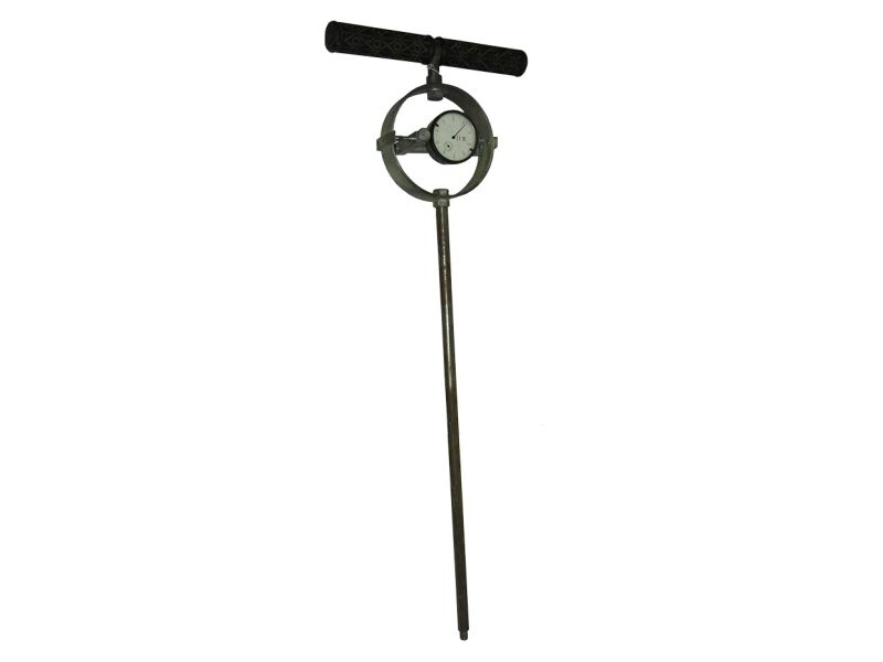 По динамометру определяют усилие уплотнения, прилагаемое прибору при заглублении наконечника в смесь на длину его рабочей части.