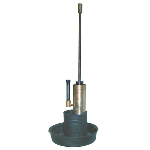 Описание: Прибор состоит из двух основных частей: фильтрационной трубки и трамбовки. Трубка предстваляет собой полый прямой цилиндр с навинчивающимся дном. В дне просверлены отверстия диаметром 3 мм, которые накрываются латунной сеткой с ячейками 0,25 мм. К верней части цилиндра с помощью штуцера подсоединена водомерная трубка (пьезометр) со шклой измерения уровня воды от 0 до 50 мм (цена деления 5 мм). Для создания градиента напора воды, равного единице, имеется специальный стакан и поддон для слива излишка воды из стакана. Трамбовка состоит из гири, перемещающейся по штанге до ограничителя, фиксирующего высоту поднятия над наковальней.