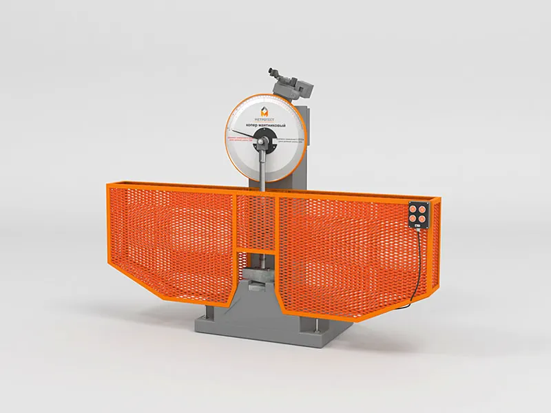 - КМ-М оснащены электромеханическим управлением, аналоговой шкалой для снятия значений энергии и защитным ограждением рабочей зоны, обеспечивающим безопасность при проведении испытаний