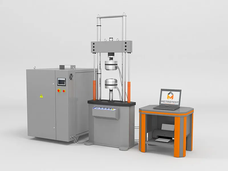 Машины оснащены гидравлическим пульсатором и цифровой многофункциональной системой автоматического программируемого управления испытательной машиной и измерения параметров прочности материалов образца.