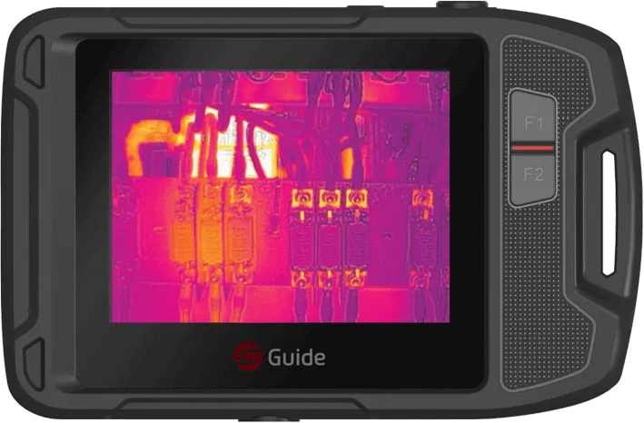 Guide P120V – это карманный тепловизор для обслуживания электрооборудования и осмотра зданий. Частота кадров 25Гц, матрица 120×90 при 17 мкм. Выполнен в виде компактного цифрового фотоаппарата, в прочном корпусе со степенью защиты IP54, не боится падений с высоты 1м. Позволяет быстро обнаруживать потенциальные проблемы. В тепловизор дополнительно встроена дневная камера, снимает фото и видео в инфракрасном и видимом спектрах, может обмениваться изображениями по Wi-Fi.