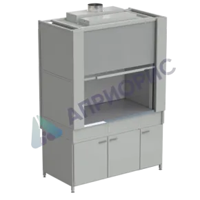 направляющим. Максимальная высота подъёма экрана равна 670 мм. Вытяжной шкаф оборудован воздуховодом для вытяжки воздуха из рабочей зоны вытяжной камеры. Освещение рабочей зоны вытяжного шкафа осуществляется через остекленное окно ВЗБ светильником, расположенным в верхней части вытяжной камеры. Вытяжной шкаф устанавливается на регулируемые опоры.