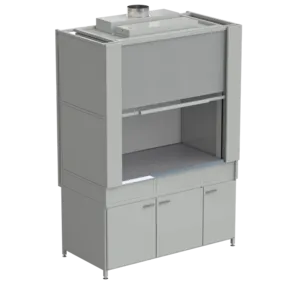 Рабочая зона камеры вытяжной изолирована стеклопластиковым коробом (коконом) и