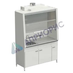 Шкаф состоит из верхней камеры и основания. Рабочая зона камеры вытяжной закрыта двумя экранами. Верхний - неподвижный экран. Экран подъёмный, изготовлен из стекла триплекс, передвигается по направляющим.