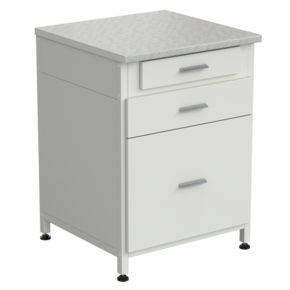 Тумба 3 ящика 610х600х850, верхний ящик - роликовые направляющие, нижние ящики - направляющие полного выдвижения, ЛАМИНАТ БЕЛЫЙ