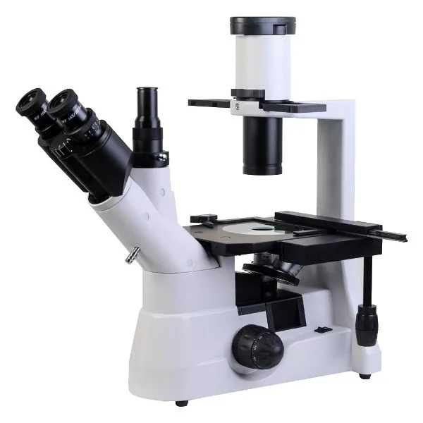 В биологических лабораториях зачастую требуется проводить исследования объектов размещенных не на предметных стеклах, а в специальной лабораторной посуде, например, чашки Петри, колбы, планшеты. Объекты могут быть закрыты крышкой или находится в жидкой среде. Прямые микроскопы не могут быть использованы ввиду того, что нельзя подвести объектив к объекту на необходимое для работы расстояние. В таких случаях следует рассматривать возможность работы инвертированных микроскопов. Особенностью таких микроскопов является расположение объективов под исследуемым объектом, а также использование объективов с увеличенным рабочим отрезком, позволяющим учитывать наличие стенки лабораторное посуды.