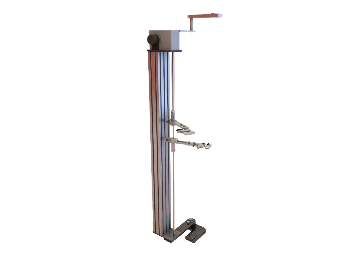 Установка крепится полуподвижно к задней части испытательной машины и фиксируется в двух положениях при помощи кронштейнов.