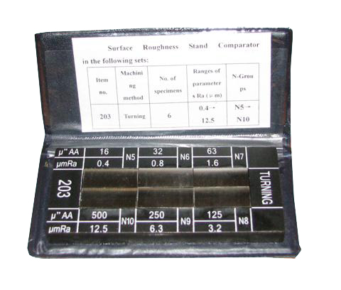 Набор образцов сравнения шероховатости поверхности по ГОСТ 9378 представляет собой набор пластин, полученных разными видами обработки (точение, фрезерование, строгание) с различными номинальными значениями параметра Ra. Предназначен для контроля шероховатости поверхности изделий на рабочих местах путем ее сравнения с поверхностью образца.