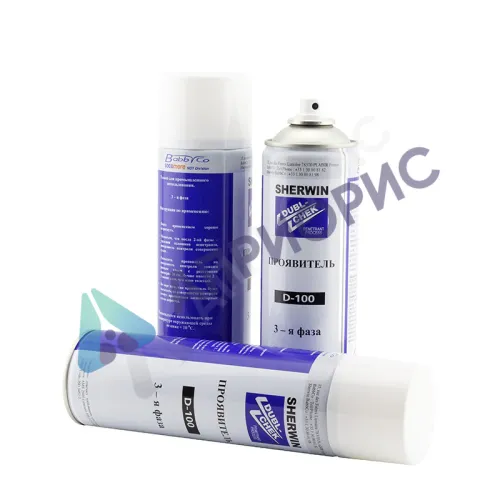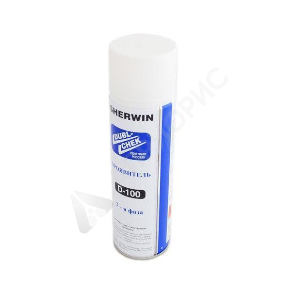 Sherwin D-100 представляет собой взвесь частиц белого пигмента, абсорбента и летучего растворителя на основе спирта. При распылении ложится на поверхность тонким однородным слоем, создавая оптимальный фон с высокой степенью белизны для яркой индикации дефектов. Выпускается в форме аэрозоли в баллончиках 500 мл, канистрах ёмкостью 1, 5, 10 литров.