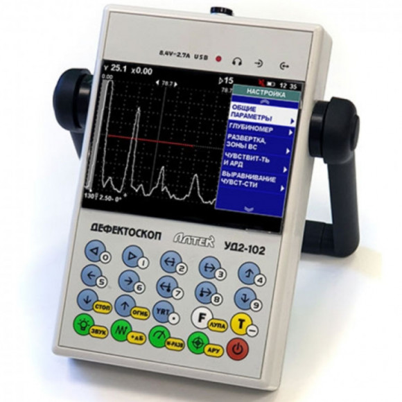 Дефектоскоп УД2-102 способен работать в труднодоступных местах, на высоте и в опасных условиях, обеспечивает до 100 предварительных настроек, помогающих облегчить работу оператора и повысить производительность, предоставляется возможность документировать результаты контроля.