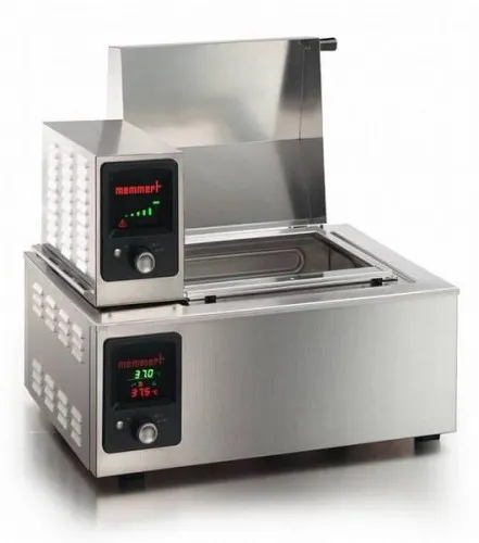 Водяные бани подсоединяются к водопроводу при помощи трубок, и в них непрерывно капает вода. Система также включает водослив, который поддерживает уровень воды в бане между двумя различными уровнями. Встряхивающее устройство превращает водяную баню в качалку с водяным термостатом. Электронный контроль скорости позволяет установить 15 мм ход при частоте от 10 до 150 в минуту. Устройство имеет опорную раму для перфорированных полок (с крепежной корзиной) и штатив для пробирок.