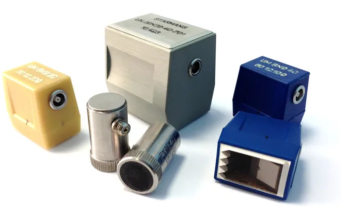 - Среднечастотные УЗ ПЭП с диапазоном частот 1,8-2,5 МГц. Преобразователи с данным диапазоном частот применяются для контроля изделий большей толщины и с большим размером частиц.