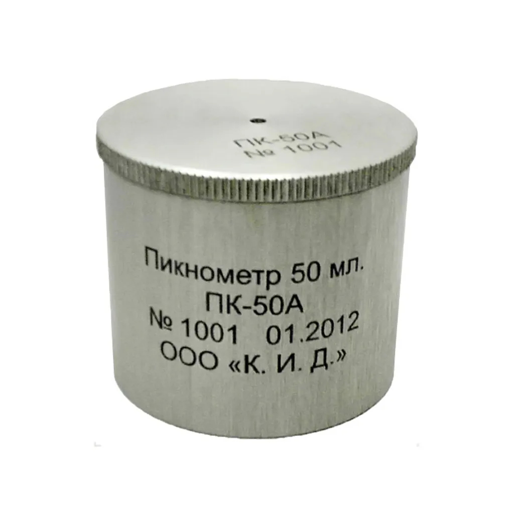 Пикнометр металлический вместимостью 50 мл. предназначен для определения плотности лакокрасочных материалов пикнометрическим методом по ГОСТ 31992.1 (взамен ГОСТ Р 53654.1-2009) и ИСO 2811-1. Материалы лакокрасочные. Метод определения плотности. Калибровка пикнометра ПК-50А осуществляется в аккредитованной лаборатории и занимает от 1 до 5 дней.