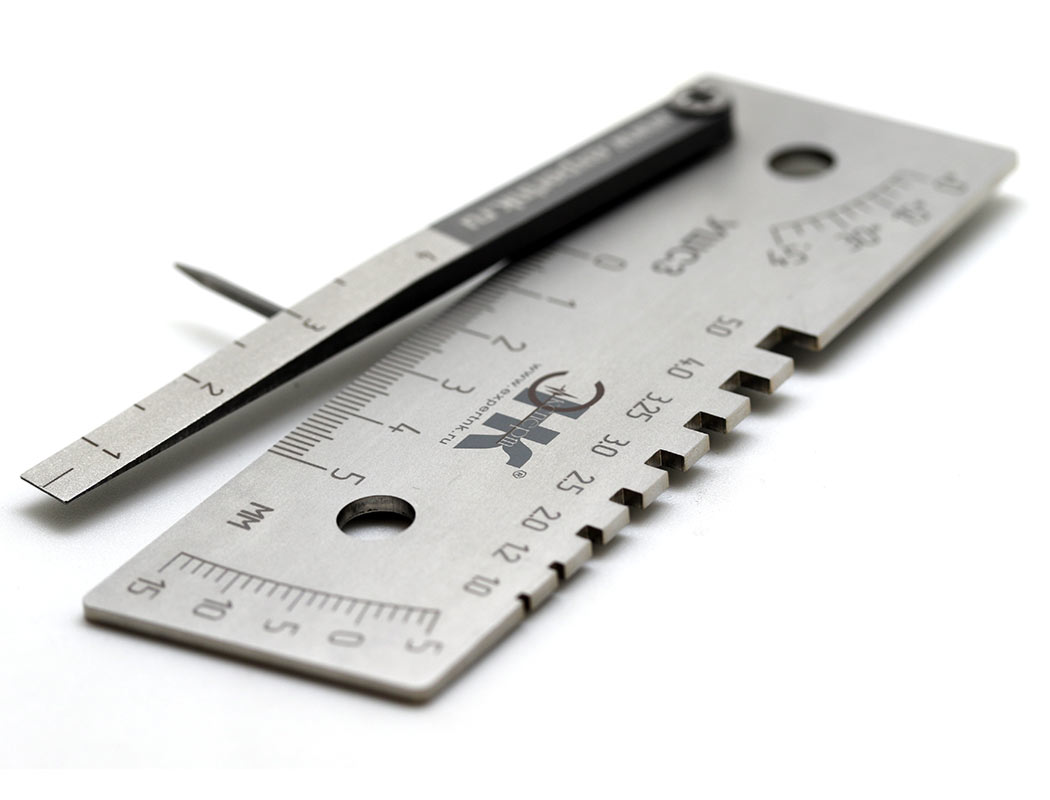 Универсальный шаблон сварщика УШС-3 НТЦ Эксперт ntc-000010 предназначен для контроля качества сварных швов и позволяет определять параметры дефектов, таких как забоины, зазоры, притупления, углы скоса и превышения кромок. Калибровка шаблона УШС-3 осуществляется в аккредитованной лаборатории и занимает от 1 до 5 дней.