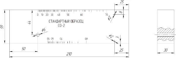 Стандартный образец СО-3 применяют для определения точки выхода ультразвукового луча и стрелы наклонного ультразвукового преобразователя. Может применяться для определения времени распространения ультразвуковых колебаний в призме преобразователя.