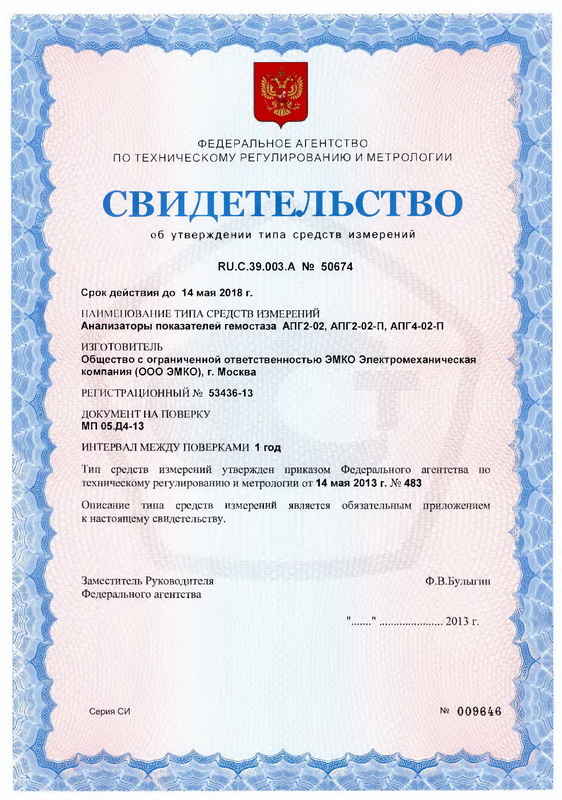 Поверка анализатора показателей гемостаза АПГ2-02, АПГ2-02-П, АПГ4-02-П