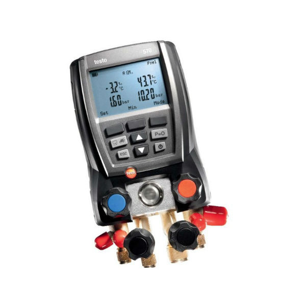 В дополненные к базовым функциям приборов серии testo 550, манометрические коллекторы testo 570 могут автоматически измерять барометрическое давление и корректировать результаты измерений, также измерять величину вакуума перед заправкой магистрали хладагентом, имеют встроенную память, могут передавать данные для обработки в программе «EasyKool».