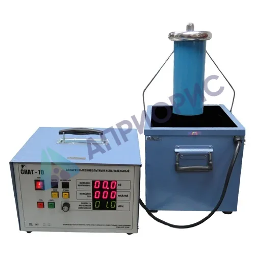 Назначение: для генерирования напряжения переменного тока синусоидальной формы частотой 50 Гц и напряжения постоянного тока, а также для измерения напряжения и силы переменного и постоянного тока при проведении испытаний и диагностировании изоляции силовых кабелей, ограничителей перенапряжений и твердых диэлектриков.