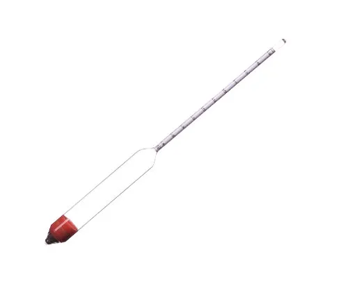 Ареометры представляют собой полый стеклянный сосуд цилиндрической формы, запаянный с обоих концов. К верхней части корпуса припаян стеклянный стержень цилиндрической формы, запаянный сверху, внутри которого прикреплена бумажная полоска с нанесенной ареометрической шкалой, градуированной в г/см3. Нижняя часть корпуса ареометра заполнена балластом, сообщающим ареометру вертикальное положение при погружении его в жидкость. Балласт сверху залит связующим веществом.