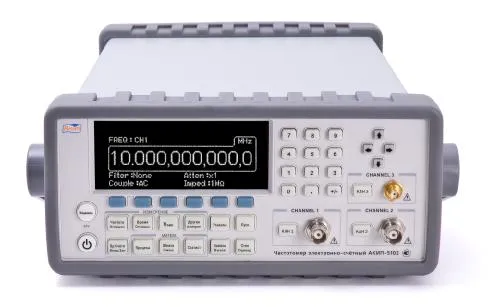 Назначение: для измерения частоты, периода, количества импульсов, пикового напряжения синусоидальных или импульсных сигналов, а в модели АКИП-5102 дополнительно: временного интервала, длительности импульсов, фазового сдвига между сигналами, отношения частот, коэффициента заполнения импульсов, времени нарастания и времени спада.