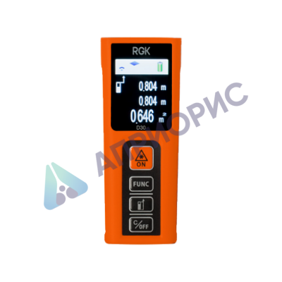 Диапазон измерений лазерного дальномера RGK D30 – 30 метров, точность при этом составляет ± 2 мм. Получить точные данные даже при ярком свете поможет яркий лазерный луч прибора.