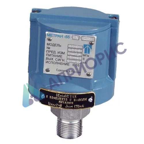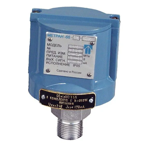 Назначение: для непрерывного преобразования избыточного давления нейтральных и агрессивных газообразных и жидких сред в унифицированный токовый выходной сигнал в системах автоматического контроля, регулирования и управления технологическими процессами в различных отраслях промышленности и городского хозяйства. Датчики имеют обыкновенное (Метран-55-ДИ) и коррозионностойкое (Метран-55-Ех-ДИ) исполнение.