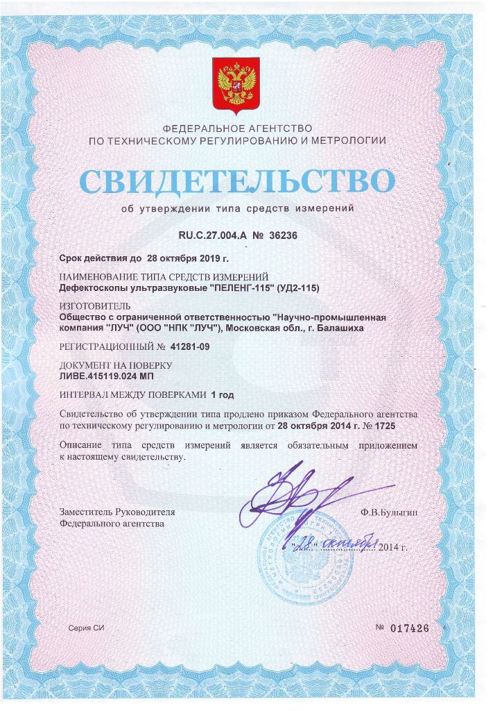 Поверка дефектоскопа ультразвукового Пеленг-115