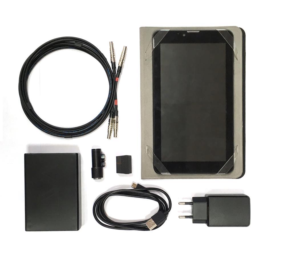 Дефектоскоп представляет собой карманный переносной компьютер (КПК), электронный блок и пьезоэлектрические преобразователи (ПЭП). КПК и электронный блок связаны между собой с помощью беспроводной сети технологии Bluetooth.