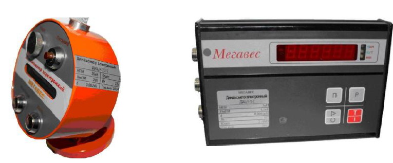 Динамометр состоит из датчика силоизмерительного тензорезисторного с силовводящими элементами, вторичного измерительного преобразователя с цифровым отсчетным устройством и соединительного кабеля.