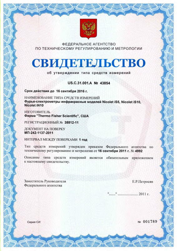 Поверка Фурье-спектрометра инфракрасного Nicolet iS5, Nicolet iS10, Nicolet iN10