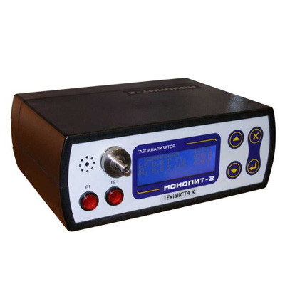 Конструктивно газоанализатор «МОНОЛИТ-2» изготовлен в пластиковом прочном корпусе, имеет дисплей на лицевой панели, а также клавиатуру, устройства подачи световой и звуковой сигнализации и штуцер входа анализируемого газа. Информация о проведенных измерениях выводится на жидкокристаллический дисплей, имеющий подсветку. Газоанализатор работает за счет электропитания от собственного встроенного аккумулятора, или от сетей переменного тока. Пробоотбор осуществляется при помощи встроенного насоса для отбора проб.