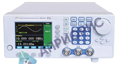 Генераторы представляют собой лабораторные многофункциональные измерительные приборы, принцип действия которых основан на технологии прямого цифрового синтеза, позволяющего получать стабильные, высокоточные сигналы с низким коэффициентом нелинейных искажений практически любой формы. На передней панели генератора находится цветной жидкокристаллический дисплей, состоящий из двух частей: в верхнем окне отображается форма генерируемого сигнала, в нижнем окне -его параметры. Справа от дисплея в генераторах серии 3407 находится вертикальный ряд функциональных кнопок, с помощью которых пользователь может выбрать различные формы генерируемых функций и типы функций модуляции, а под дисплеем расположен горизонтальный ряд кнопок управления меню, используемых для настроек параметров генераторов. В нижней части панели расположены выходные разъемы двух каналов и разъем для USB-накопителя.