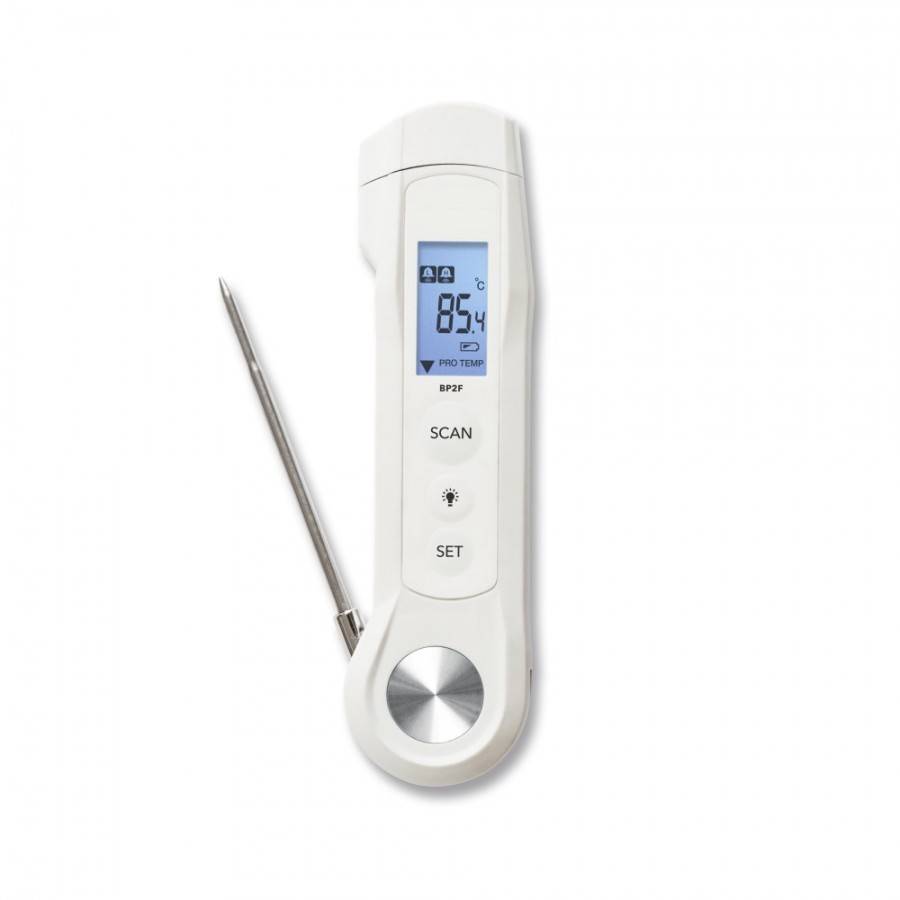 Принцип действия термометров при бесконтактном измерении температуры (встроенным инфракрасным (ИК) датчиком) основан на преобразовании теплового излучения объекта, который улавливается объективом и фокусируется на приемнике, в электрический сигнал, пропорциональный температуре, и дальнейшего его преобразования внутренней микропроцессорной системой в цифровой сигнал и отображения на ж/к дисплее прибора.