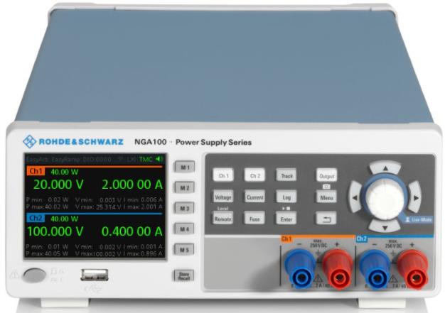 Конструктивно источники питания постоянного тока NGA100 выполнены в виде настольного лабораторного прибора. Управление и контроль над режимами работы источников осуществляет встроенный микроконтроллер. Установка выходных параметров и управление режимами работы осуществляются с помощью функциональных клавиш и/или поворотного переключателя, расположенных на лицевой панели, а также по интерфейсам дистанционного управления USB, LAN.