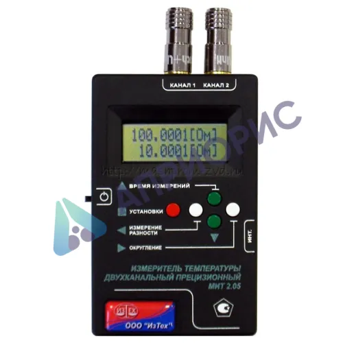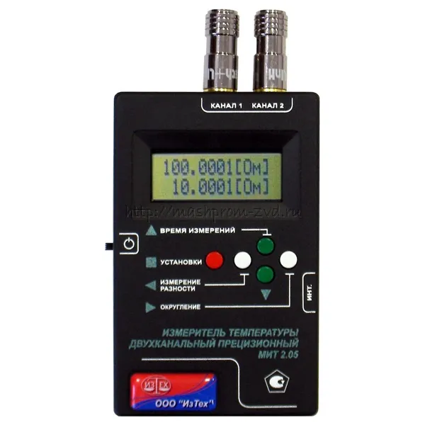 Измеритель температуры двухканальный прецизионный МИТ 2.05 предназначен для измерения сигналов от первичных преобразователей температуры и преобразования их по стандартным или индивидуальным статическим характеристикам в значение температуры СОС). В качестве первичных преобразователей температуры могут использоваться термопреобразователи сопротивления (ТС) ГОСТ 6651-94 и преобразователи термоэлектрические (ТП) с номинальной статической характеристикой преобразования (НСХ) по ГОСТ 8.585-2001.