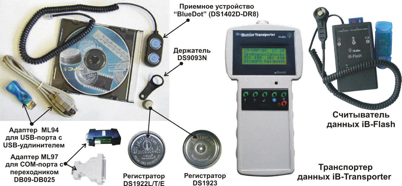 Конструктивно все регистраторы размещены в герметичных миниатюрных корпусах, изготовленных из нержавеющей стали, что позволяет использовать их в агрессивных средах, в условиях механических воздействий и в электромагнитных полях. Корпус регистратора DS1923 имеет специальное отверстие в крышке центральной части футляра. Изнутри отверстие закрыто гидрофобным фильтром, который пропускает воздух, но препятствует попаданию внутрь корпуса регистратора влаги и пыли. Для считывания и передачи на персональный компьютер информации, накопленной в памяти регистраторов iBDL, применяются переносные приборы, поставляемые по отдельному заказу: транспортер данных iB-Transporter и считыватель данных iB-Flash. Транспортер данных iB-Transporter предназначен также для перезапуска регистраторов с новыми установочными параметрами.