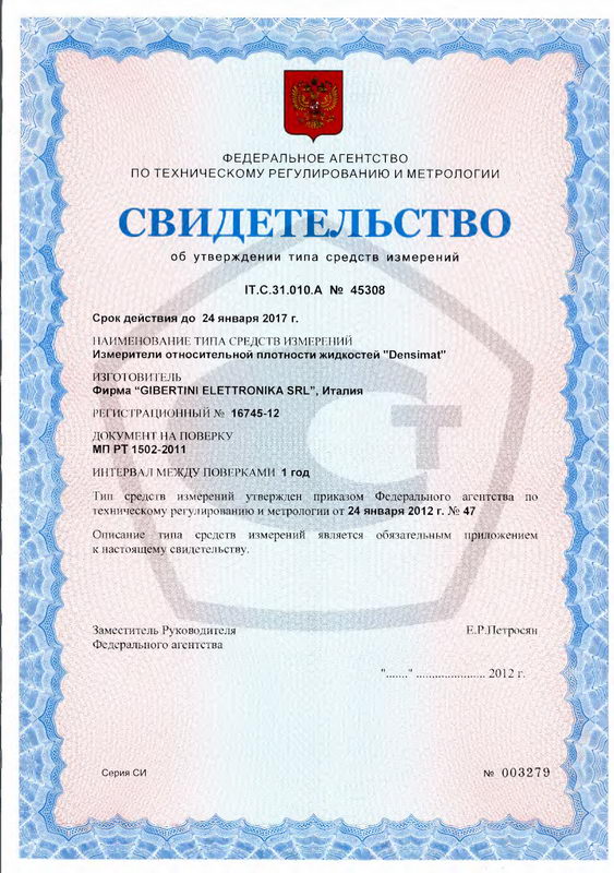 Поверка измерителя плотности жидкостей относительной Densimat
