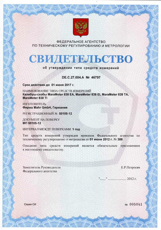 Нормативные документы и технические документы, устанавливающие требования к калибрам-скобам MaraMeter 838 EA, MaraMeter 838 EI, MaraMeter 838 TA, MaraMeter 838 TI