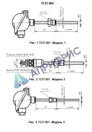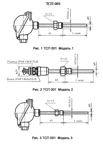Чувствительный элемент помешен в защитную трубку из нержавеющей стали и соединяется при помощи выводов с клеммной головкой . Комплекты термометров сопротивления имеют две модификации КТСПР 001 и КТСПР 001-01 в зависимости от конструктивного исполнения защитной арматуры и способа крепления на трубопроводе .