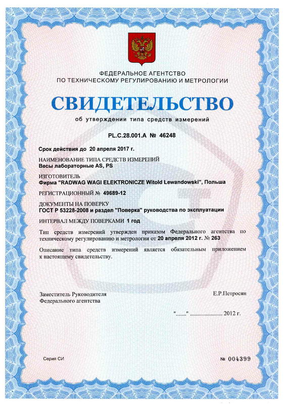 Поверка лабораторных весов AS, PS