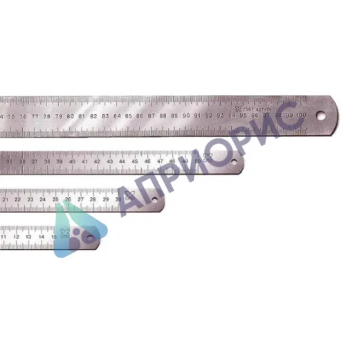 Линейки измерительные представляют собой металлическую ленту, на которой нанесены две шкалы в виде штрихов через 1 мм. На линейках с пределом измерения 1000 мм допускается одна шкала. Каждый сантиметровый штрих шкалы линеек имеет числовое обозначение , указывающее расстояние в сантиметрах до этого штриха от начала шкалы.