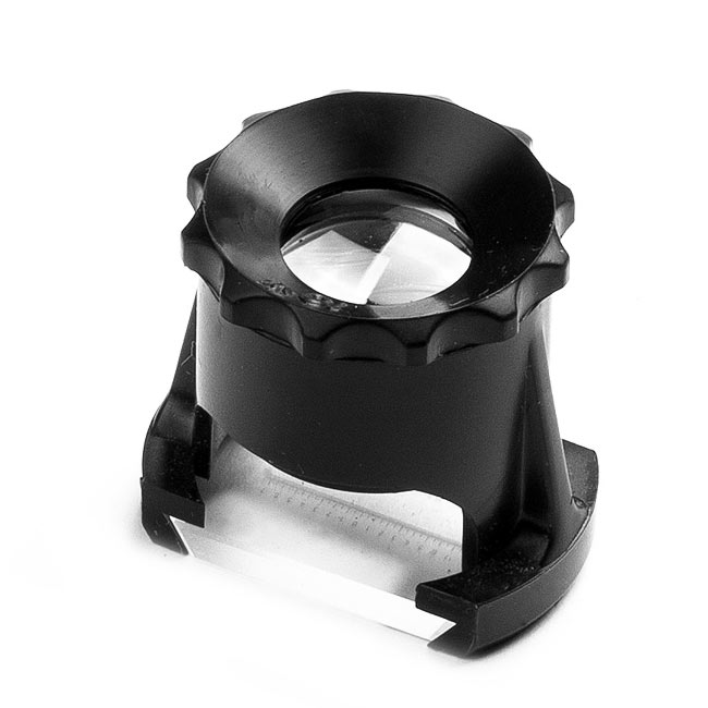 Принцип действия луп основан на совмещении штрихов измерительной шкалы с краями измеряемого объекта. Лупа измерительная ЛИ-3-10х состоит из трех линз, обеспечивающих 10-ти кратное увеличение и стеклянной сетки, на которой нанесена измерительная шкала.
